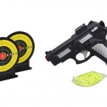 Tato pistole na kuličky je perfektní hračka pro malé střelce, kteří rádi trénují svou mušku. Díky dvěma přiloženým terčům mohou děti soutěžit s kamarády nebo se zlepšovat samy. Lehká a snadno ovladatelná konstrukce z plastu podporuje bezpečnou a zábavnou hru.