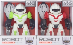 Zábavný plastový robot, který chodí, otáčí se, vydává zvukové efekty a svítí. Součástí je štít a pistole pro akční hraní. Napájení na 3× AA baterie (nejsou součástí). Ideální dárek pro děti od 3 let.