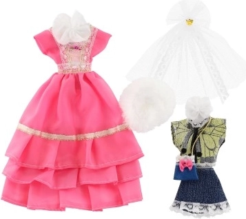 Udělejte z vaší panenky módní ikonu s naší sadou oblečků. Obsahuje dva druhy nádherných šatů s elegantními krajkovými detaily, doplněné o šikovné doplňky pro různé příležitosti. Skvělá volba pro všechny malé módní návrhářky!