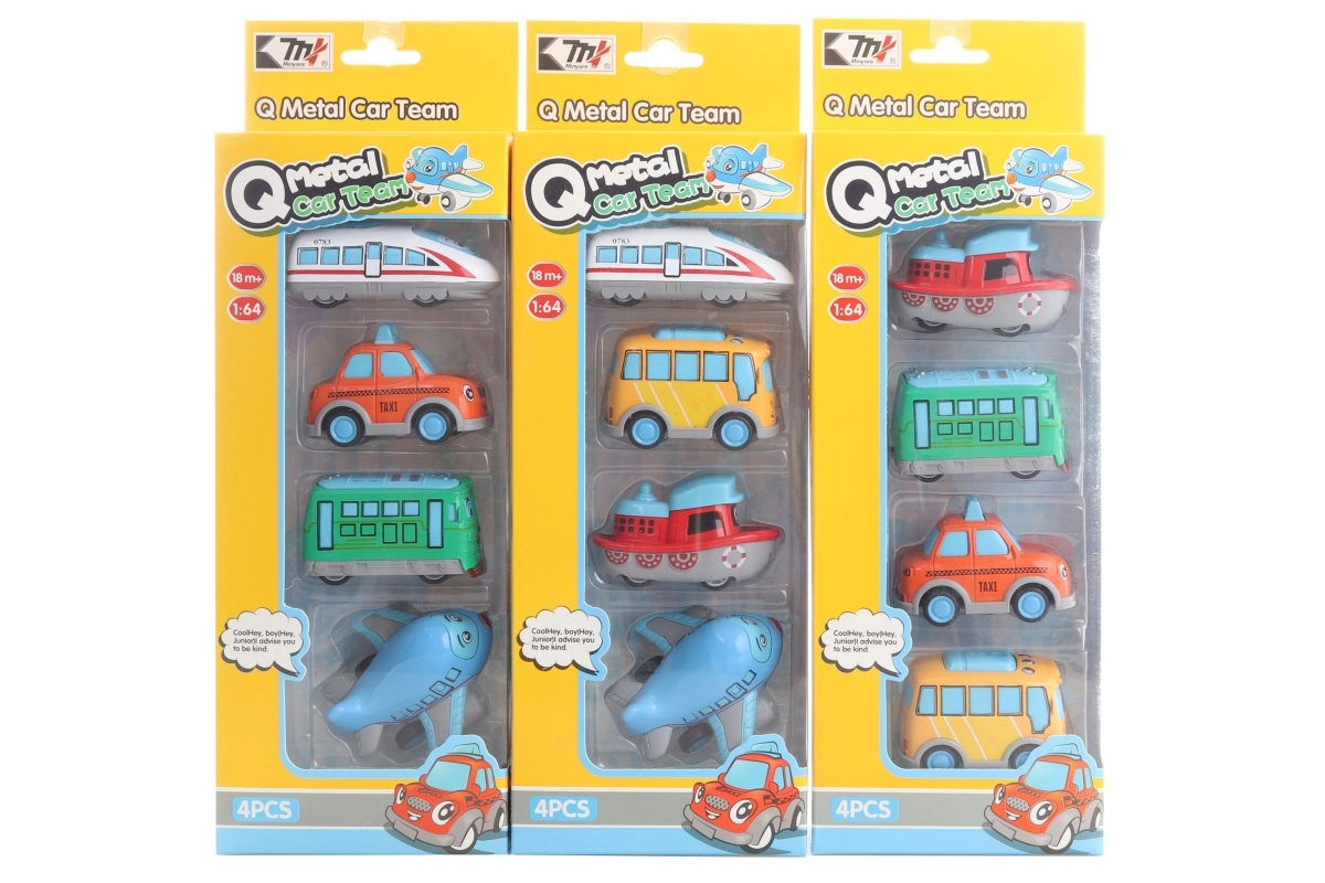 Objevte zábavnou sadu kovových dopravních prostředků pro nejmenší. Balení obsahuje 4 různé modely o velikosti cca 6,5 cm, ideální do malých dětských rukou. Kovové zpracování zajišťuje odolnost a dlouhou životnost, zatímco kompaktní rozměry podporují jemnou motoriku a kreativní hraní. Vhodné pro děti od 18 měsíců.