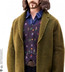 Figurka zobrazuje Siriuse Blacka v charakteristickém zeleném kabátu a s kouzelnickou hůlkou, zvýrazňuje realistické detaily jako jsou kudrnaté vlasy a vousy.