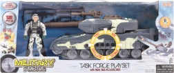 Objevte akční zábavu s touto vojenskou sadou s tankem na baterie, která svítí a vydává realistické zvuky. Balení zahrnuje tank s otáčivou věží, figurku vojáka a příslušenství pro kreativní hraní. Součástí jsou 2× AG13 baterie, takže můžete začít hned po rozbalení. Ideální dárek pro děti od 3 let.
