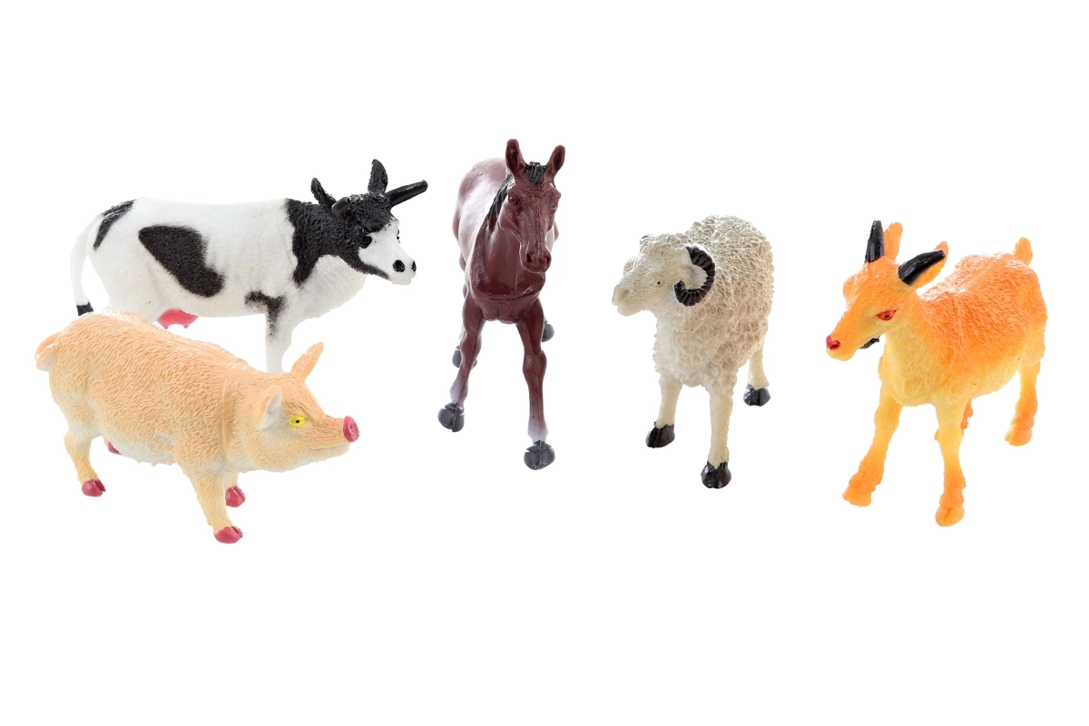 - 5 realistických figurek: prase, beran, kůň, koza a kráva.