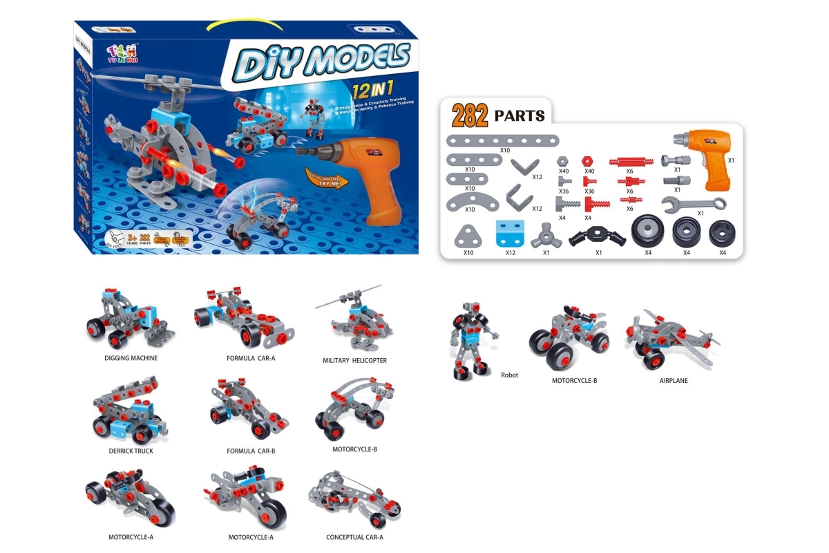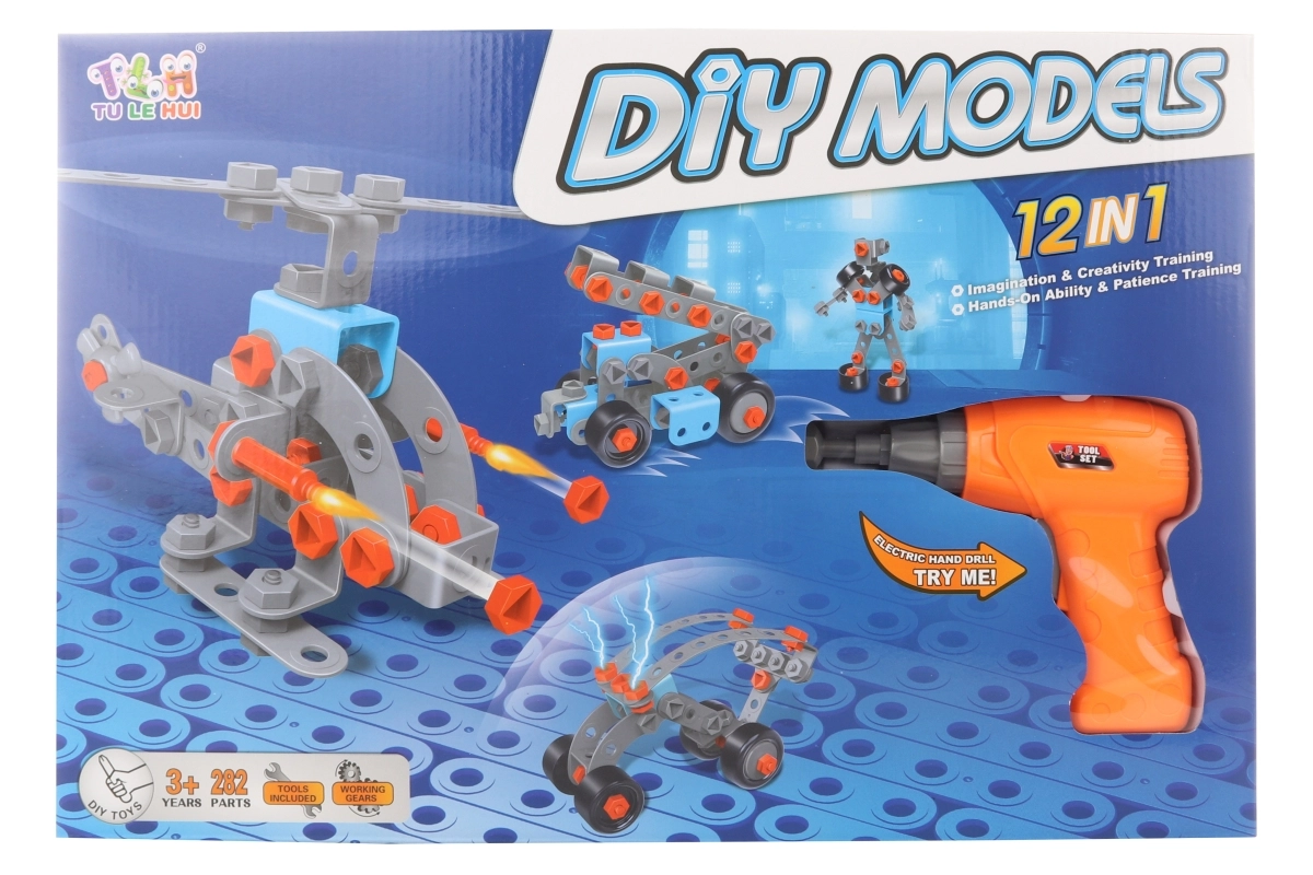 Zábavná šroubovací stavebnice s dětskou vrtačkou a šroubovákem rozvíjí jemnou motoriku, představivost a technické myšlení. Obsahuje celkem 282 dílků, praktickou vrtačku na 2× AA baterie (baterie nejsou součástí) a návod s inspirací ke stavění. Ideální vzdělávací hračka pro děti od 3 let.