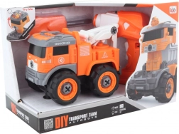 Zábavná stavebnice a RC hračka v jednom! Tato šroubovací odtahovka se dá pomocí přiloženého šroubováku nebo vrtačky snadno rozložit a znovu složit, navíc ji můžete transformovat na robota. Vyjímatelný motorek z vrtačky se vloží do auta a to poté jezdí na dálkové ovládání dopředu i dozadu. Hračka svítí a vydává zvuky, podporuje jemnou motoriku a kreativitu dětí. Ideální pro děti od 3 let.