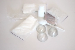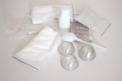 Kompletní sada obsahuje suroviny a pomůcky pro výrobu 4 šumivých bomb – od sody a kyseliny citronové až po mořskou sůl, přírodní olej, barvivo a rukavice.