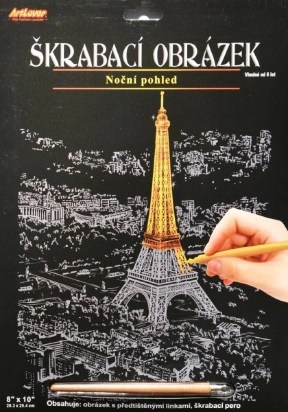 Sada je připravena k okamžitému tvoření – obsahuje obrázek o rozměru 20 × 25 cm a plastové škrabací pero dlouhé 14 cm. Pro malé děti je kvůli ostrému hrotu pera vhodný dohled dospělé osoby.
