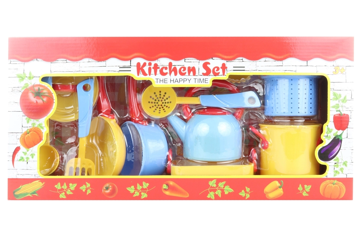 Hrací kuchyňka bude s touto sadou ještě zábavnější. Sada plastového nádobí obsahuje konvici, hrnec, síto, rendlík, pánev, pokličku a další doplňky – vše, co malí kuchaři potřebují pro své první recepty. Ideální pro dětské hry na vaření, rozvíjí fantazii a jemnou motoriku. Lehký plast, bezpečné provedení pro děti a bohaté příslušenství potěší každého malého kuchaře.