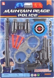Staňte se malým strážcem pořádku s touto kompletní policejní sadou! Balení nabízí plastovou pistoli na přísavky, 3 náboje s přísavkou, dalekohled, obušek, terč a pouta – vše ideální pro bezpečné a kreativní hraní dětí od 3 let.