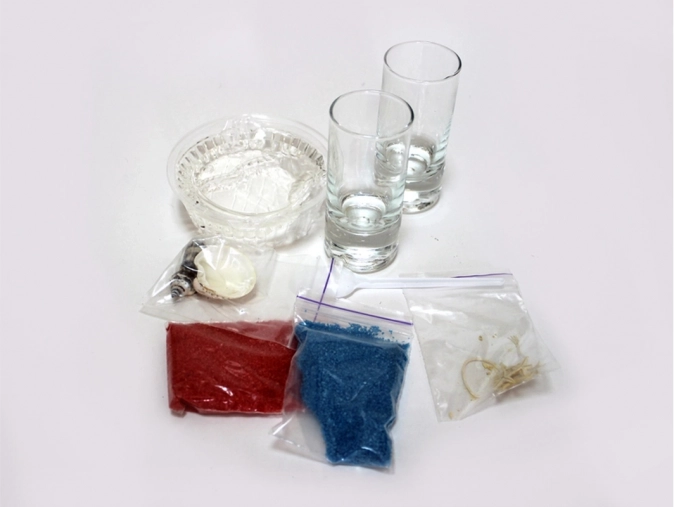 - 2 skleničky, gelový základ, barevný písek, mušličky a další potřeby