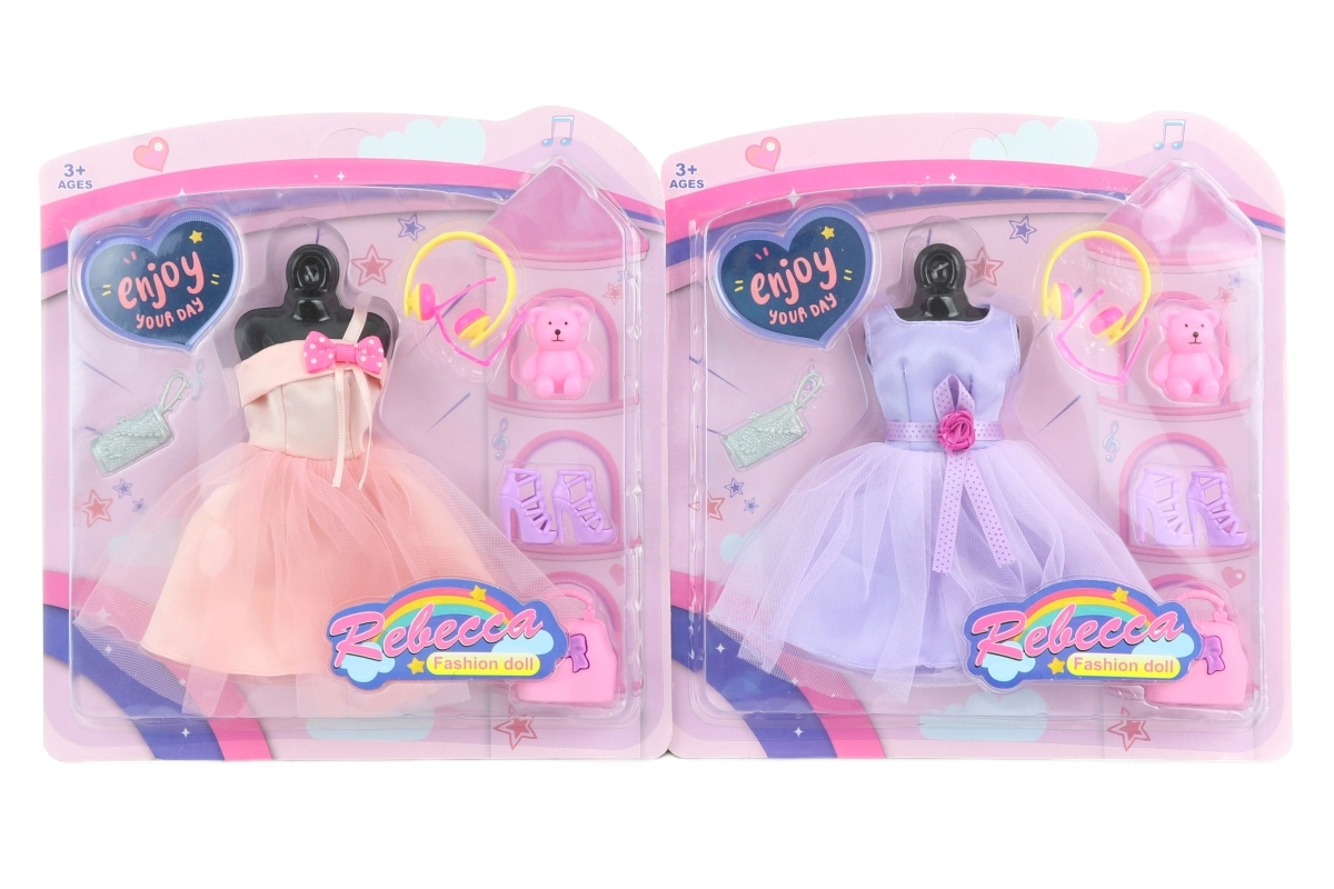 Roztomilá sada pro malé milovnice panenek obsahuje šaty pro panenku a stylové doplňky pro kreativní hraní. Najdete v ní střevíčky, 2 kabelky, plyšového medvídka a sluchátka. Šaty mají rozměry cca 14,5 × 12 cm a jsou ideální pro běžné panenky. Skvělý dárek pro děti od 3 let.