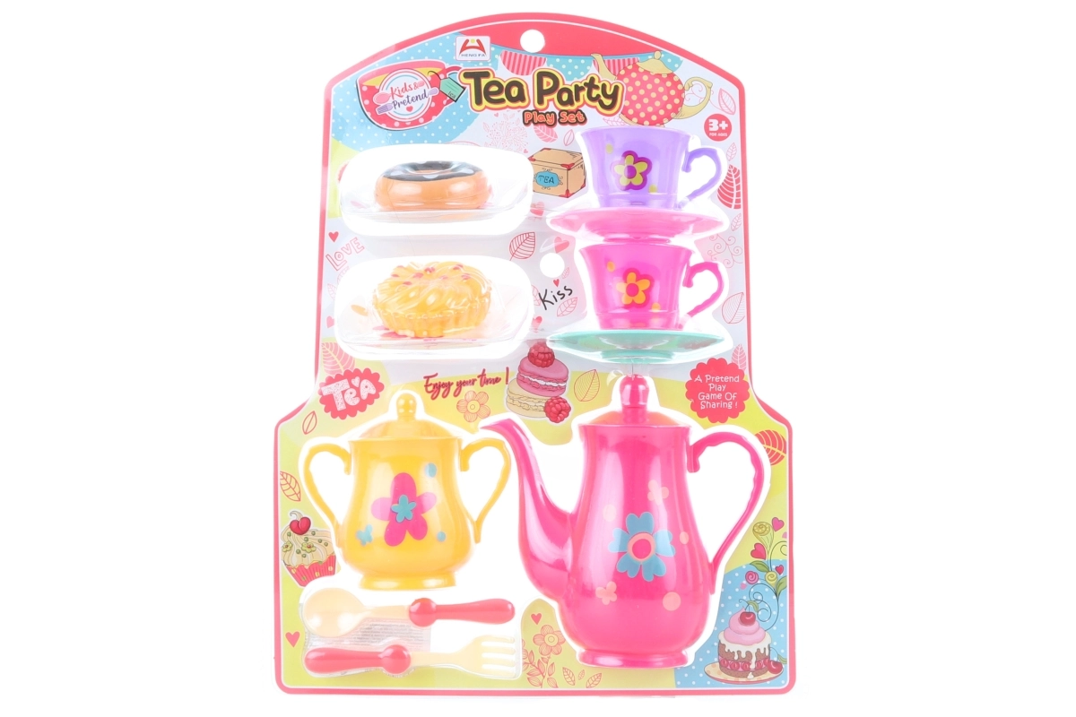 Zábavný plastový čajový servis pro malé hostitele a hostitelky přináší vše, co je potřeba pro dokonalé hraní na čajový dýchánek. Souprava obsahuje konvici, cukřenku, dva šálky s podšálky, dva tácky se zákusky, vidličku a lžičku. Ideální pro děti od 3 let a rozvoj fantazie a společenské hry.