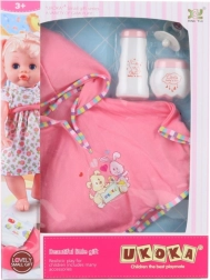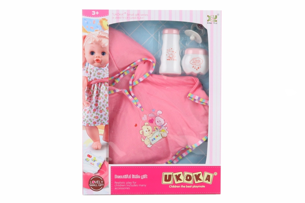 Tato univerzální sada doplňků pro panenku o velikosti 45 cm je skvělým doplňkem každé dětské sbírky. Díky ponču, dudlíku a lahvičkám si děti mohou zahrát na péči o miminko a rozvíjet svou představivost.