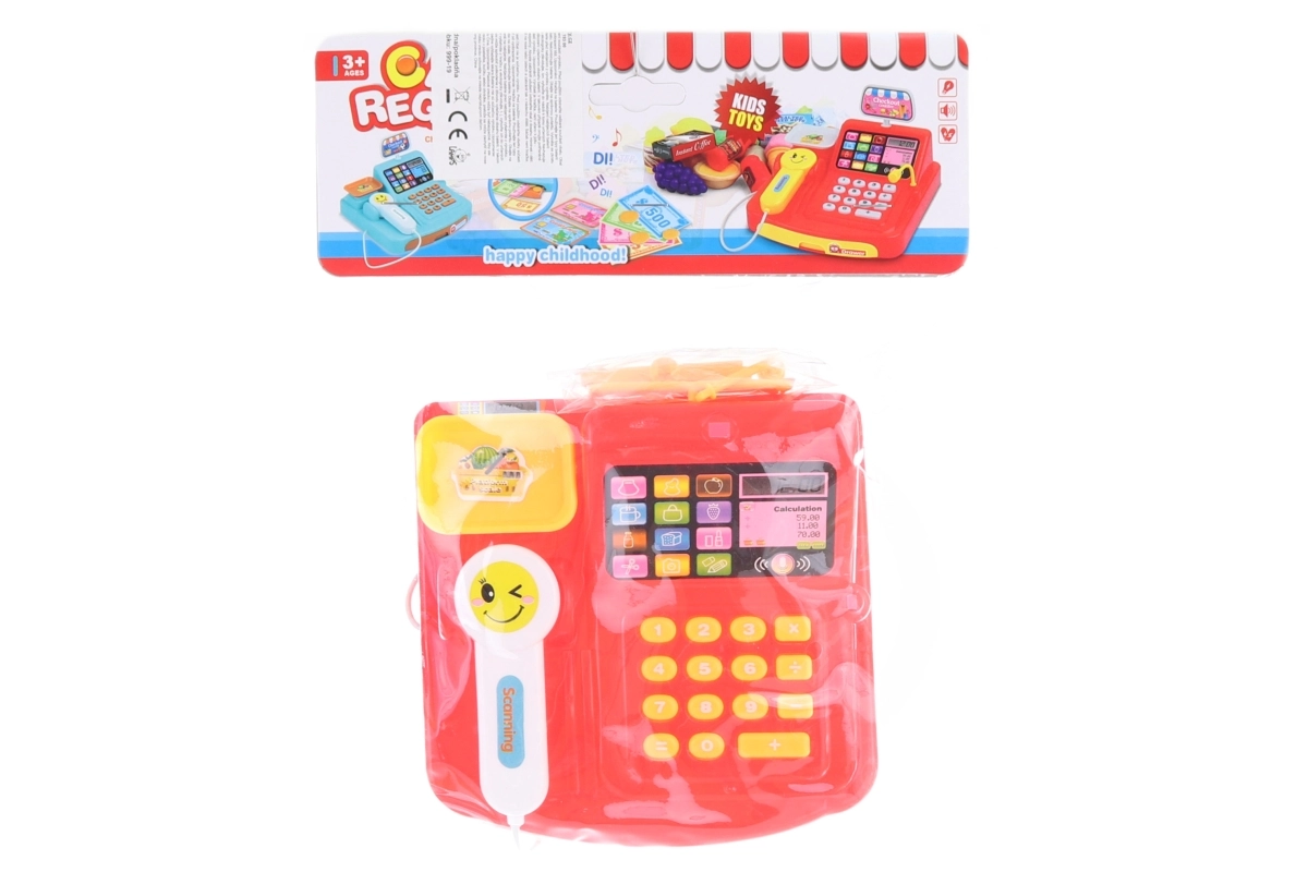 Pokladna je vyrobena z odolného plastu a díky kompaktním rozměrům cca 15 × 13 × 6,5 cm se snadno vejde do dětského pokoje i na cesty. Baleno v praktickém sáčku – ideální jako dárek.
