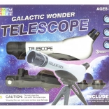Tento lehký a stabilní teleskop je skvělou volbou pro první pozorování Měsíce, jasných planet a pozemních objektů. Díky průměru objektivu 60 mm a variabilnímu zvětšení 20×, 30× a 40× si děti snadno vyzkoušejí různé úrovně detailu a naučí se základy astronomie.
