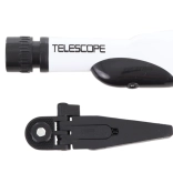 Objevte noční oblohu s tímto plastovým dětským teleskopem se stojanem, který nabízí průměr objektivu 60 mm, zvětšení 20×, 30× a 40× a snadné zaostřování na 170 mm. Ideální pro začínající astronomy od 8 let.