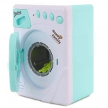 Po zapnutí se ozve napouštění vody a pračka se rozsvítí – děti mají pocit skutečného praní.