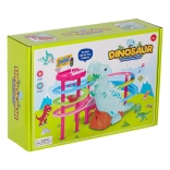 - Kompletní set: dráha k montáži, 3 dinosauří autíčka a sada samolepek.