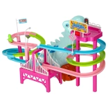 Tato barevná závodní dráha s tematickým dinosaurem nadchne malé i větší děti. Jakmile se autíčka ve tvaru dinosauřat rozjedou, velký dinosaurus vydává realistické řvoucí zvuky a dráhu rozzáří LED světla. Jediný vypínač pohodlně ovládá pohyb i efekty, takže se děti mohou plně soustředit na hru.