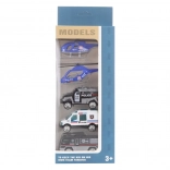 Sada policejních kovových aut s helikoptérami
