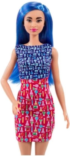 Dlouhé modré vlasy a barevné šaty dodávají Barbie moderní vzhled. Je to ideální kombo pro všechny kreativní děti.