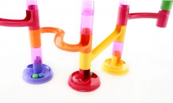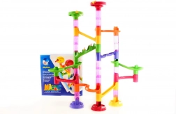 Stavebnice kuličkové dráhy nabízí pestré trubky, zatáčky a skluzavky, které snadno zacvaknete do sebe a vytvoříte originální tratě. Díky 45 dílům poskládáte nízké i vícepodlažní sestavy a pokaždé zažijete jiný závod.