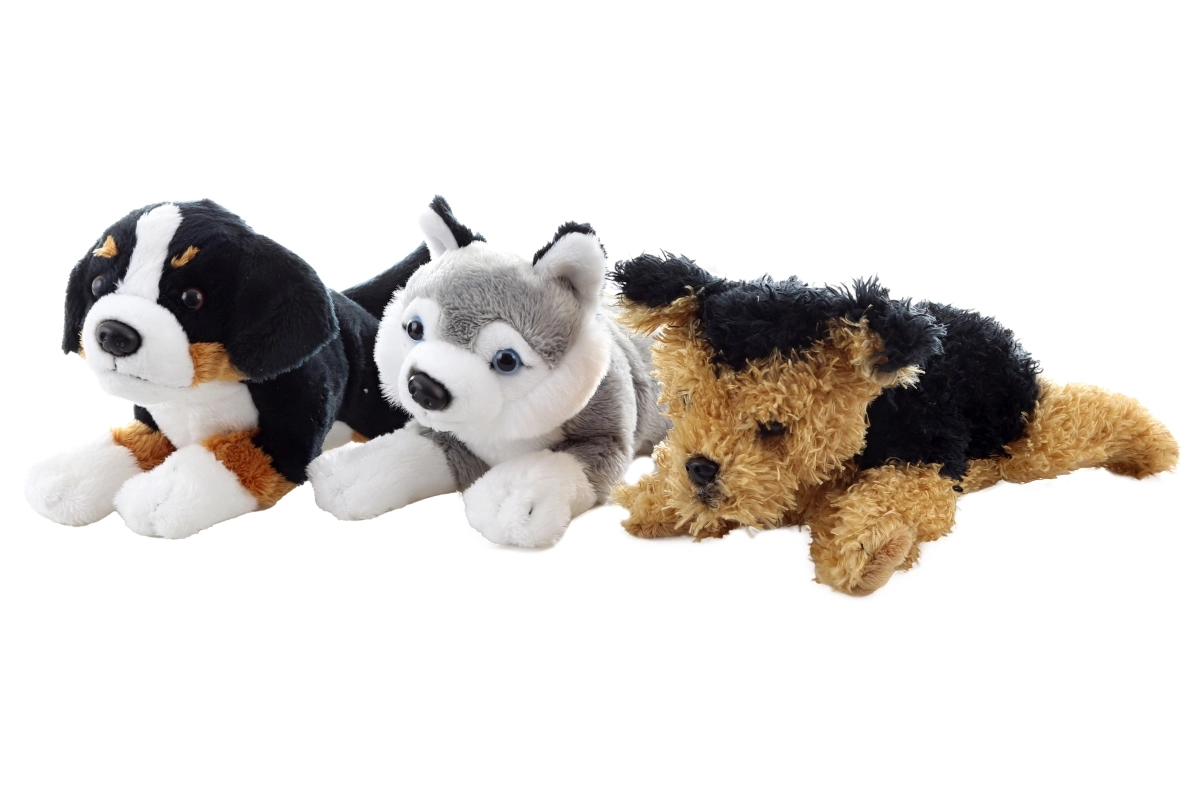 Roztomilý plyšový pejsek v poloze vleže o velikosti 19 cm je ideální pro mazlení i jako první hračka pro nejmenší. Má měkoučké hebké chloupky, bezpečné provedení pro věk 0+ a kompaktní rozměry, které padnou do dětské ručky.