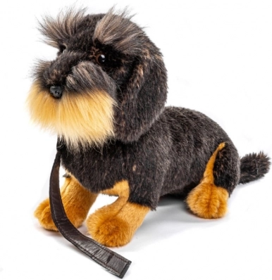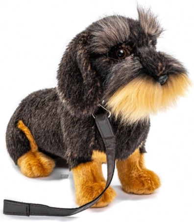 Tento plyšový jezevčík si získá srdce dětí i dospělých svým roztomilým vzhledem a kvalitním zpracováním. Hebká srst, výrazné oči a kontrastní hnědé detaily dodávají hračce realistický charakter, zatímco krátké vodítko podporuje role-play a péči o "mazlíčka".