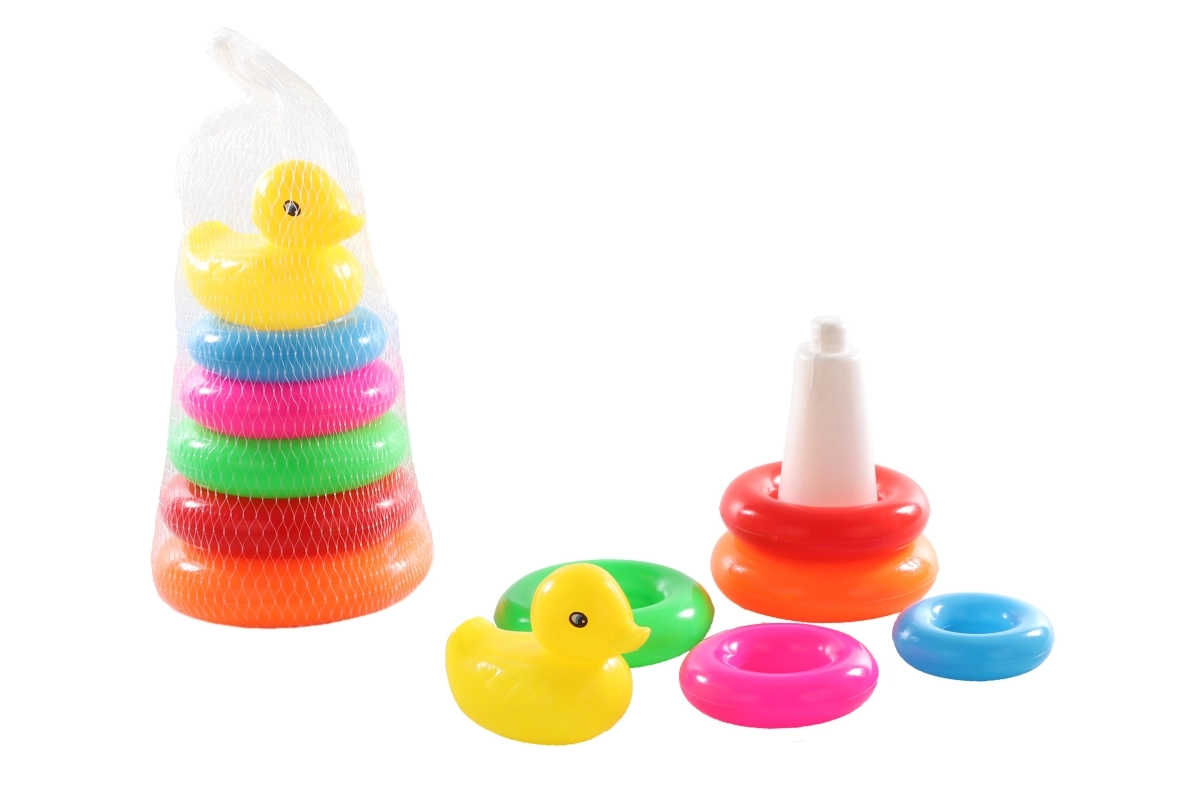 Roztomilá plastová skládačka ve tvaru kužele s kačenkou potěší nejmenší děti od 12 měsíců. Podporuje jemnou motoriku, koordinační dovednosti a rozpoznávání tvarů a velikostí při bezpečném hraní.