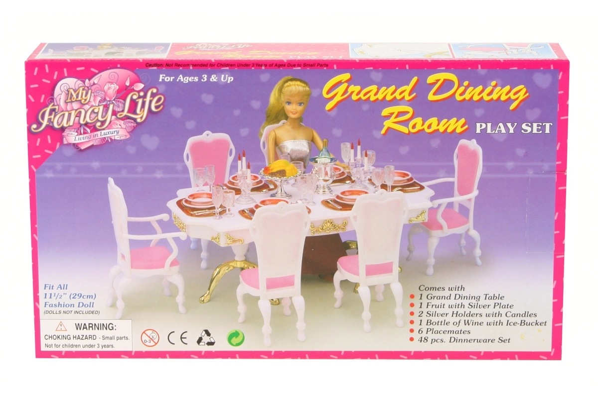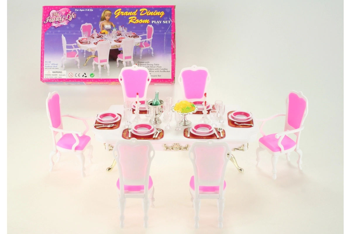 Vytvořte dokonalou večeři pro panenky s kompletní sadou Glorie. Velký stůl a šest židlí poskytují dostatek místa pro hosty, zatímco detailní doplňky dodají hře realistický nádech. Sada je navržena pro snadné používání dětmi a podporuje fantazii, komunikaci a jemnou motoriku.
