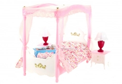 Tato detailně zpracovaná postel s nebesy promění pokojíček panenek v útulné království. Díky bohatému příslušenství a funkčním lampičkám si děti užijí spoustu realistických scénářů a zábavy. Kvalitní plastové provedení zajišťuje odolnost a snadnou údržbu.