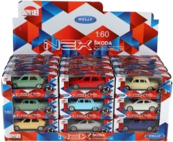 Model autíčko Škoda 1:60 od Welly, kov a plast, 7 cm, volný chod, mix barev v krabičce