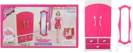 Šatní skříň GLORIE se zrcadlem je skvělým doplňkem do světa panenek. Nabízí otevírací dvířka a zásuvky pro uložení šatiček a doplňků a praktická ramínka pro pověšení oblíbených outfitů. Díky přiloženému zrcadlu mohou děti snadno kombinovat a zkoušet nové stylové kreace.