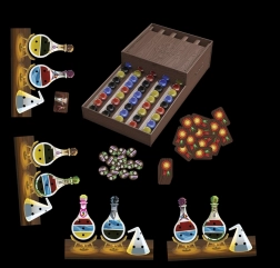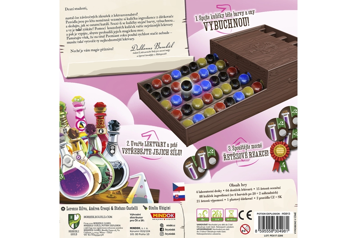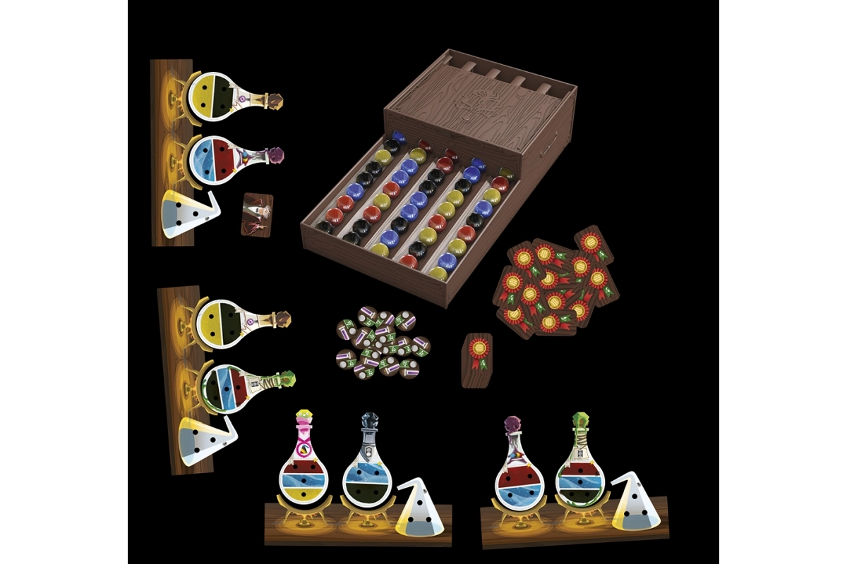Drazí studenti,nastal čas závěrečných zkoušek z lektvaroznalství!Pravidla jsou po léta neměnná: vezměte si kuličku ingredience z dávkovače a sledujte, jak se ostatní kutálí. Srazí-li se kuličky stejné barvy, vybuchnou… a vy je také získáte! Pomocí kouzelných kuliček vařte nejrůznější lektvary a pak je vypijte, abyste probudili jejich magickou moc.Pamatujte však, že na titul Premiant roku pouhá rychlost stačit nebude – musíte také vytvořit ty nejhodnotnější lektvary.Nechť je vám magie přízniva!Věk 8+