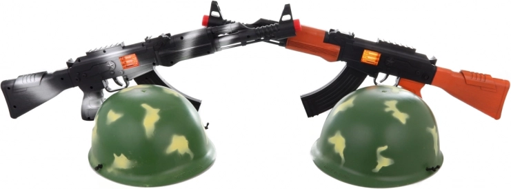 Zábavná dětská sada pro malé vojáky obsahuje rachotící plastový samopal o délce cca 53 cm a vojenskou helmu s vnitřním průměrem cca 18,5 cm. Skvělá volba pro hra na vojáky, rozvoj fantazie a akční dobrodružství. Vhodné pro děti od 3 let.