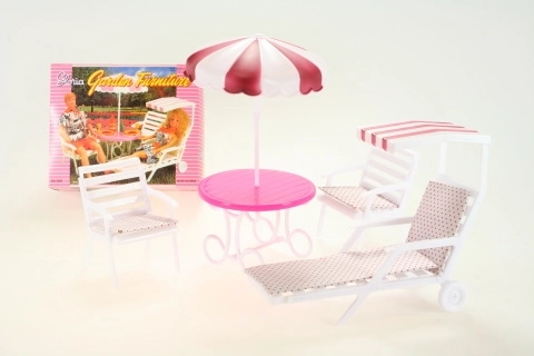 - Kompletní zahradní posezení pro panenky – ideální pro letní scénky.