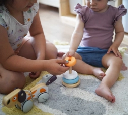 Dřevěná konstrukce zajišťuje dlouhou životnost hračky, bezpečnost a ekologický přístup, čímž se ideálně hodí pro nejmenší.