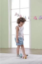 Hračka je vyrobena z odolného, lakovaného dřeva a barvena netoxickými barvami bezpečnými pro děti. Hladké hrany a příjemná velikost jsou ideální do malých dětských rukou. Při společné i samostatné hře děti trénují kreativitu, jemnou motoriku a představivost.