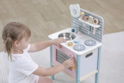 Kuchyňka je navržena pro bezpečné hraní dětí od tří let, podporuje rozvoj jemné motoriky a umění napodobování.