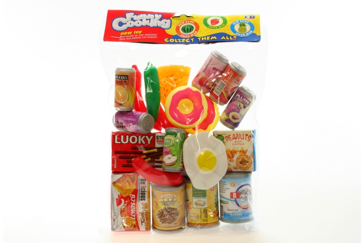 Zábavná sada dětského jídla v sáčku pro malé kuchaře. Obsahuje různé potraviny z plastu a papíru v praktickém balení o velikosti cca 31 × 21 cm. Ideální pro rozvoj fantazie, sociálních dovedností a hraní na obchod či kuchyňku. Bezpečné provedení, snadné skladování a vhodné od 3 let.