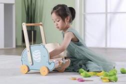Dřevěné chodítko a vozík 2v1 VIGA PolarB v hravém designu sloníka podporuje první krůčky, jistotu při chůzi i přirozený rozvoj motoriky. Pevná konstrukce z kvalitního bukového dřeva a pohodlné madlo pomáhají dětem trénovat rovnováhu bezpečně a zábavně.
