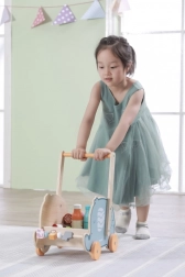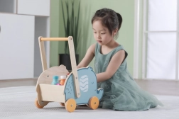 Stabilní dřevěná konstrukce a pohodlné madlo dávají dětem oporu při učení chůze. Trénují koordinaci, jistotu a přirozený rytmus kroků.