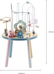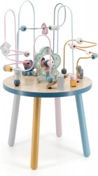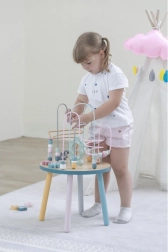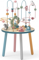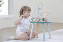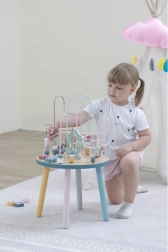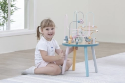 Korálkový labyrint na pevném dřevěném stolku vybízí děti k objevování. Barevné tvary a roztomilá zvířátka (medvídek, liška, ježek) motivují k pohybu prstíků, přesnému uchopování a tvoření vlastních příběhů. Ideální volba pro domácí „montessori“ styl učení hrou, která rozvíjí trpělivost, soustředění i představivost.