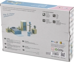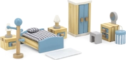 Postel, 2 noční stolky, skříň, věšák a toaletní stolek se stoličkou doplní každé miniaturní bydlení. Děti mohou snadno aranžovat nábytek a vytvářet vlastní příběhy.