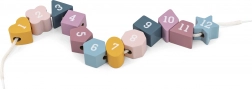 Každý dílek má otvor pro provlékání šňůrkou – trénuje úchop, koordinaci oko–ruka a trpělivost.