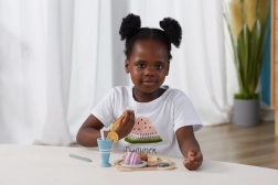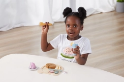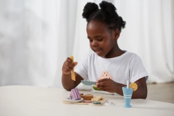 Barevné kousky jídla, dezert i nápoj umožní dětem servírovat oběd jako doopravdy a trénovat základy stolování.