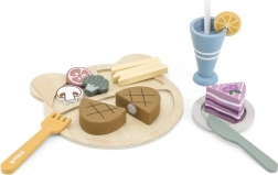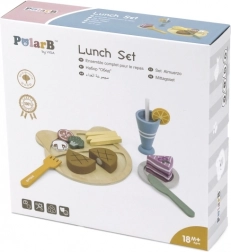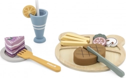 Dřevěná obědová sada POLARB od VIGA je připravená pro servírování mňamky ve stylu. Na talířek si děti mohou naaranžovat steak, hranolky, zeleninu i dezert a vše „zapít“ nápojem se slámkou. Realistické doplňky lákají k napodobování dospělých a rozvíjejí samostatnost i slovní zásobu.