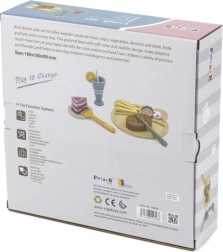 Díky robustnímu dřevu a kvalitnímu zpracování je set odolný při každodenní hře. Vhodné do dětské kuchyňky, herního koutku i na cesty. Hra s potravinami podporuje barvy, tvary a základní pravidla stolování.