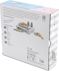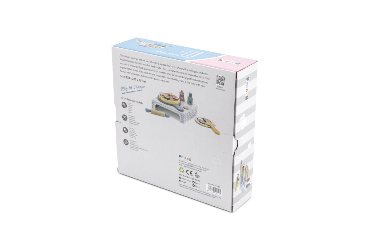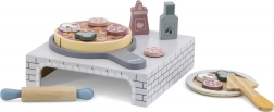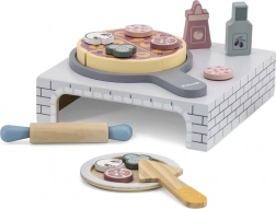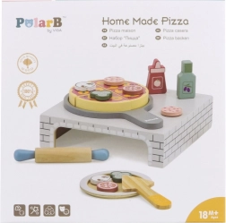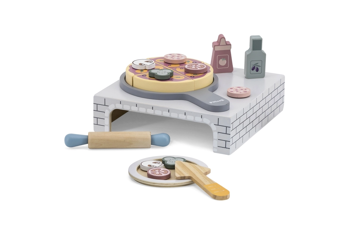 Objevte kouzlo pizzérie u vás doma s touto kvalitní dřevěnou sadou pro hraní na kuchaře. Set obsahuje pec na pizzu, krájecí pizzu s odnímatelnými toppingy, váleček, talířek a další doplňky pro realistickou hru. Podporuje jemnou motoriku, kreativitu a rolové hry už od 18 měsíců.