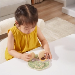 Díky kvalitnímu dřevu a hladkému zpracování je hra bezpečná pro malé ručky. Barevné ilustrace motivují k opakovanému hraní a pomáhají s rozpoznáváním barev i tvarů. Skvělá volba pro první vzdělávací hračku do dětského pokoje.